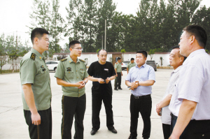 7月28日下午,宋河酒业公司副总裁、生产基地总经理刘新田(右三)来到鹿邑县消防大队,亲切慰问消防子弟兵,并向他们送去节日的祝福。刘新田说:“企业的发展离不开你们的保护,正是由于你们的奉献,以及不畏艰险、艰苦奋斗的顽强作风,我们才有了安全感,也才能安下心来认真做事,以更好地支持鹿邑的经济建设。 ”