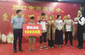本报讯 7月30日上午,“周口市慈善总会爱行天下工作委员会”揭牌仪式在周口路路通车友俱乐部成功举行。共青团周口市委、周口市慈善总会、周口市文明办、周口义工协会、周口国学文化促进会等单位及社会团体参加揭牌仪式。爱心天下工作委员会以帮弱助残爱心捐助为宗旨,自筹办以来,开展了多次关注留守儿童、义诊、法律援助、爱心送考 、大型志愿者服务等公益慈善活动。在此次揭牌仪式上,周口爱行天下委员会的爱心人士黄振军 、张春现、刘彩丽、李昊泽等为西华县清河驿乡李新村的两位孤儿捐助1万元现金。几位爱心人士表示,他们会每年捐助这俩孩子1万元,直到他们大学毕业。