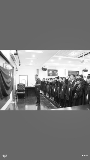 宣誓仪式上,55名新执业律师身穿庄重严肃的律师袍,面向国旗,高唱国歌。随后,他们在娄际堂的带领下庄严宣誓:“我志愿成为一名中华人民共和国执业律师,我保证忠实履行中国特色社会主义法律工作者的神圣使命,忠于祖国,忠于人民……”