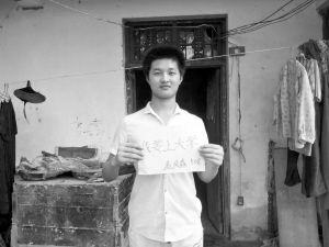 郸城县汲冢镇孟庄村的孟庆森今年以508分的成绩被新疆大学录取。虽然考上的是一所211大学,但孟庆森却在高兴之余流露出一丝惋惜。“我平时在学校模拟考试中的成绩都是580分左右。在高手云集的郸城一高,这样的分数虽不算高,但也能让我考上一个更好的大学。高考没有发挥好,我也很意外,不过失败是没有理由的。”孟庆森略有不甘地说,很多同学都劝他复读一年,或许能考得更好,但他还是放弃了,因为他的家庭没有更多的钱支持他复读。