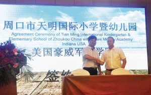 8月5日,周口市天明国际小学(含幼儿园)与美国豪威军事学院签约,缔结友好学校。双方就学校管理、课程设置、师生发展等方面加强合作,这也意味着周口市天明国际小学(含幼儿园)与国际教育接轨的开始。据了解,今年刚刚落成招生的周口市天明国际小学(含幼儿园)旨在培养具有国际视野的学生,它采用小班制、中英双语教学,可以满足部分学生家长在家门口享受高端教育的需求。