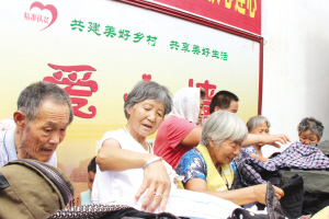 8月11日,项城市南顿镇高洼村村民在“爱心墙”前挑选市交通运输局赠送的衣服。当日是我市确定的8月份扶贫日,市交通运输局把该局干部职工购买、赠送的500多件衣服送到高洼村,为困难群众奉献爱心。 通讯员 常全欣 摄