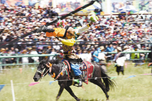 当日,九色甘南香巴拉·玛曲第十一届格萨尔赛马节在甘肃玛曲开幕。玛曲是中国名马河曲马的中心产地,自古以来就有举办赛马大赛的传统,2012年被国家体育总局命名为“中国赛马之乡”。本届赛马节为期5天,来自全国40个代表队的643名参赛选手参加角逐。新华社记者 黄晓勇 摄