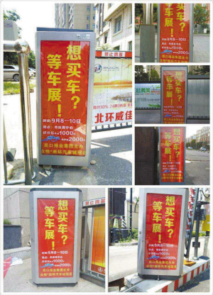 为了利用最有效的宣传途径进行造势,经过多方酝酿和谋划,近阶段,周口报业传媒集团主要采取了以下主要方式进行宣传推介:一是在《周口日报》《周口晚报》每周刊登3期以上自宣广告,不惜版面进行大力宣传;二是自7月30日开始,通过中华龙都网进行网上造势;三是在周西路口、中州大道过街口、大庆路与建设大道交叉口、八一大道与建设大道交叉口、五一广场等处设置了6块醒目的户外宣传大牌;四是在周项路、周淮路、周西路口设置了大型墙体广告;五是自8月8日开始,在广播电台开播为期一个月的车展广告;六是在市区100多辆公交车的后彩屏进行不间断滚动宣传;七是在市区70多个小区门口平等门及灯箱上布设了宣传广告;八是自8月12日开始,出动多辆流动宣传车在市区主要街道进行巡回宣传。