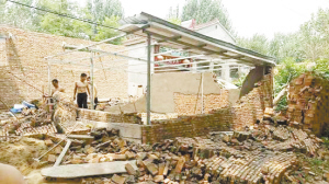 本报讯 8月17日,周口港区城管办“两违”治理一中队强制拆除了辖区苑寨行政村村民苑某录突击抢建的一处违法建筑(如图)。