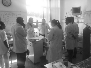 2017年3月4日凌晨1点左右,一阵急促的电话铃声惊醒了熟睡中的中国援埃塞俄比亚第十九批医疗队的麻醉科医师赵巍。他急忙穿好衣服,跑到手术室。原来是提露内丝-北京医院的一位医生在急诊行剖宫产手术的过程中,产妇突然出现心跳、呼吸骤停的现象。当时值班的医生立即实施CPR(心肺复苏术),15分钟后,产妇呼吸、心跳恢复。但是,该产妇病情极不稳定:意识丧失,双侧瞳孔中等度散大、光反射消失,呼吸急促,心率每分钟140多次。手术医生向中国医疗队寻求帮助。了解病人情况后,赵巍医生立即报告给我,我急忙起床赶到手术室。经简单了解病史及检查病人后,考虑产妇存在严重脑水肿、脑疝现象,病情危重,需要立即组织医疗队神经内科、心内科、妇产科医生到场进行抢救。凌晨1点30分,医疗队队员的宿舍响起了急促的敲门声,声音惊醒了熟睡中的其他队员,我来不及给大家解释立即带领队员们赶往手术室组织会诊和抢救!
