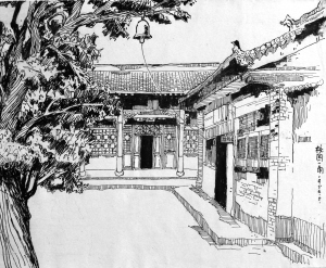 上个世纪50年代的周口一中位于文化街西段,沙颍河南岸关帝庙(山陕会馆)内。画面左侧三间正屋为周口一中教务处,正面三间房子是我读初中二年级下学期的教室。这个庭院早已在现实生活中消失,然而却永远留在我的记忆中。