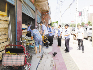 据悉,每天6时30分,小桥办事处就提前上街巡查了,办事处书记王红卫、主任石国旺、副书记周志宏、城管队长张永威等各带一支队伍,走街串巷劝导商户规范经营,协助个别偶然违规的商户收纳出店货物(如图),清理街边小广告等,同时兼顾澄清“两违”底数、统计棚户区改造房屋数量等工作。