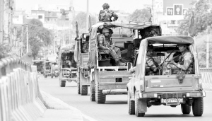 8月26日,印度军方在哈里亚纳邦锡尔萨地区巡逻警戒。