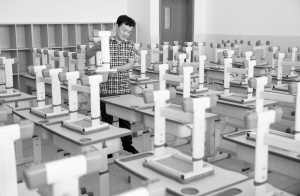 8月29日,在重庆市北碚区新建成的复兴小学,一名教师在整理课桌。