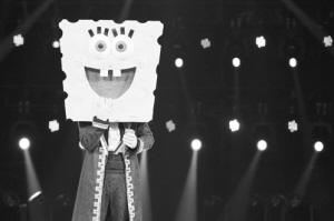 本报综合消息 第二季《 蒙面唱将猜猜猜》于9月3日晚登陆江苏卫视。首期节目精彩不断,“宝宝翻身把歌唱”(右图)自爆亲过Angelababy,引得猜评团齐齐大呼“黄晓明”。记者在探班现场见证了搞笑的录制过程。