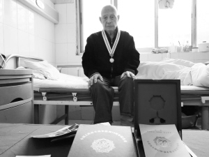 “中条山,高又高,铁(一)样坚,钢(一)样牢。飞机轰不动,大炮打不倒,敌人说它像盲肠(音),我们把它当成宝。一、二、三、四!”还没走进西华县人民医院南院住院部心内科二十病房,一阵激昂的口号声先从病房里传出来。这个病房里住着一位抗战老兵,名叫高时贤。“他是位老英雄,我们经常能听到他喊这样的号子。”一位病友对周口晚报记者说。