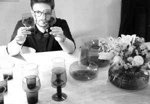 这是9月5日在比利时布鲁塞尔举办的9月设计展媒体预展上拍摄的比利时设计师阿兰·贝尔托与他设计的系列玻璃作品。