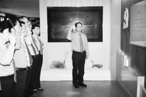 在讲解员的引导下,大家观看了警示教育专题片,聆听了党和国家领导人关于廉政建设的谆谆教诲,重温了入党誓词(如图)及焦裕禄等先进典范的光辉事迹,目睹了部分官员从昔日党员干部沦落到今朝阶下囚的贪腐蜕变。