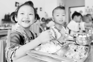 2017年春季以来,贵州省黔东南苗族侗族自治州凯里市全面实施农村学前教育儿童营养改善计划,农村幼儿园和易地扶贫搬迁安置幼儿园免费为孩子们提供“两餐两点”(即:早餐、午餐,早点、午点)。新华社发