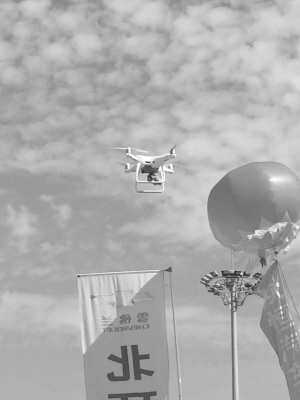 无人机在车展上空悬停拍摄