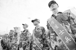 9月10日,河北省邯郸市新兵整齐列队,准备奔赴军营。