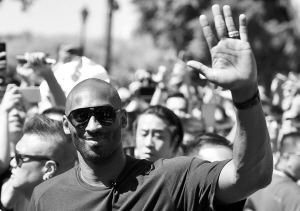 9月12日,前NBA球星科比现身海口,参观了海口观澜湖华谊冯小刚电影公社,还在海南华侨中学观澜湖学校与青少年进行了篮球互动。