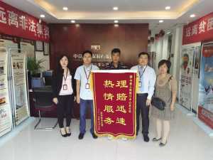 9月7日一大早,客户袁先生来到中意人寿周口中心支公司,向公司工作人员送来感谢锦旗,对自己儿子袁某某的案件理赔表示衷心感谢:“没想到中意保险理赔速度这么快,感谢中意人寿在孩子案件中给与的各种关爱与慰问,非常感谢!”