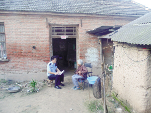 为了不影响居民休息,他把入户时间确定在中午12点至下午1点半和晚上6点至9点之间。为了能尽快掌握辖区情况,他放弃了双休日,趁居民大多在家时工作。走门串户很辛苦,晚上,有些村组道路没有路灯,只能用手电筒照明,深一脚浅一脚的摸索前行,入户时中午经常吃不上饭,就带点面包和矿泉水凑合一下。走访中他总结出入户走访的“三块敲门砖”,即一张微笑的脸,一句中听的话,一颗不厌其烦的心。以及做好群众工作的“四件宝”,即摄像头的脑袋,婆婆的嘴,亲人的心,兔子的腿。就这样,短短几个月,他就把辖区的群众走访了60%以上,对辖区内的实有人口、出租房屋、暂住人口、工作对象、公共场所及易发生案件的地段和时间点等信息得到全面了解。