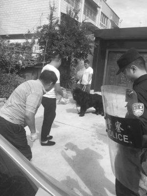 天亮后,围观的人越来越多。那只藏獒见状显得十分生气,不停地发出低吼声。由于害怕出现意外,闫先生报了警。派出所民警赶到后,说这件事需要特警来处理。8时许,市公安局特殊警务支队一大队的宋凯锦等6位民警带着盾牌、防爆钢叉和左轮手枪赶到现场。“我们之所以没有开枪将其击毙,主要是考虑这只藏獒虽然流浪在此,但没有主动攻击人,没有发疯。在这种情况下,我们决定尽可能联系到藏獒的主人,并请专业爱狗人士帮助,和平控制藏獒。”宋凯锦说。