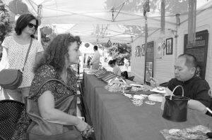 9月16日,在贝尔格莱德“北京日”启动仪式上,贝尔格莱德市民观看中国手工艺大师描绘京剧脸谱。