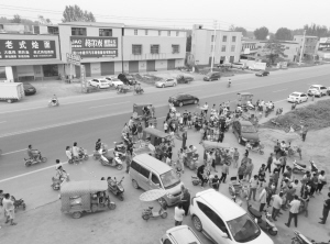 临时指挥部选在金海路办事处彭新庄村口的豫森禽业公司,那里是彭新庄最宽阔的地方。按到村干部的通知,村民三三两两前往那里聚集(图一)。
