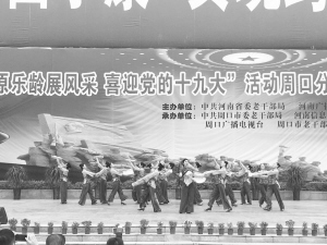 本报讯 9月20日9时许,由河南省委老干部局、河南广播电视台联合主办的“中原乐龄展风采 喜迎党的十九大”大型演出在省会郑州及18个省辖市同时上演。我市的分会场设在五一文化广场,共有11个文艺团队的287名老干部登台表演(如图),400余名市民观看了演出。