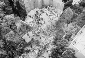 9月19日的航拍照片显示,在墨西哥首都墨西哥城,救援人员在建筑废墟中展开搜救。