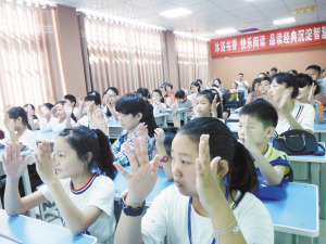 在“知识一点通”环节,通过具体的写作实践,名师告诫小记者“在写作中要善于观察抓住景物特点,并把景物特点展开来写”,这样写文章就会思如泉涌。“读书,不仅能增长知识,还能带来快乐!”小记者苑璐晗说,“一个小时的上课时间有点儿短,觉得听得‘不过瘾’!”同苑璐晗一样,许多小记者家长对讲座赞赏有加。随后,名师带领大家走进图书室一起品读经典,并不时回答小记者和家长提出的问题,在交流中碰撞智慧。