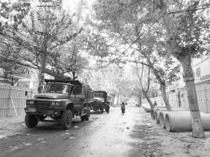 9月24日,淅淅沥沥的小雨没能阻碍育新路升级改造的进程。据了解,9月20日该路段全封闭,随后大型机械进入,开始施工。晚报记者 徐松 摄