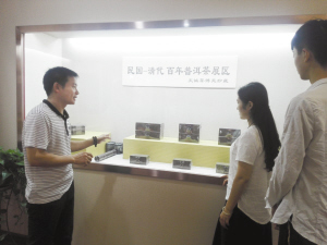 9月23日,10多块百年普洱陈茶开始在我市天诚茶博苑展示。这些陈茶由市茶叶商会会长、市收藏家协会秘书长石中杰从山西获得。业内人士表示,百年普洱陈茶历经时光流转,蕴含天地精华,是稀缺珍品,值得爱茶人士一饱眼福。
