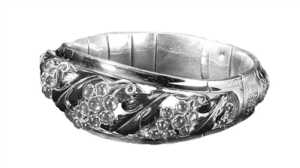 古代手镯通常是金、银、玉制成,其按结构一般可分为两种:一是封闭形圆环,以玉石材料为多;二是有端口或数个链片,以金属材料居多。唐宋以后,手镯的材料和制作工艺得到高度发展,除了金银手镯外,还出现了镶玉手镯、镶宝手镯等,造型有圆环形、串珠形、绞丝形、辫子形、竹子形等。到了明清、民国,以金为材质镶嵌宝石的手镯盛行不衰,手镯在饰品的款式造型上、工艺制作上都有了很大的发展。