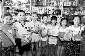 9月26日,祖墩中心小学学生在展示用生活垃圾兑换的学习用品。