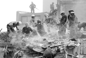 9月25日,救援人员在墨西哥首都墨西哥城的一处地震废墟中搜寻。