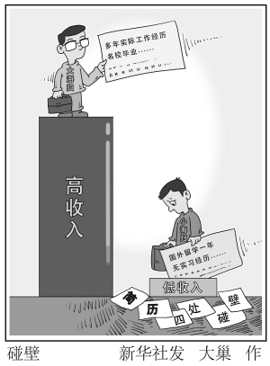 留学一年取得美国高校商学硕士学历的张晴,没想到回国后找工作居然会四处碰壁。她原以为找个上万元的工作是底线,但投了无数简历后发现,仅靠留学文凭在招聘市场上根本吃不开。