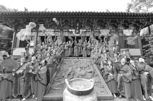 当日,中国西湖情玫瑰婚典在杭州浪漫上演,来自全国各地的100对新人身穿汉服喜结连理,情定西子湖畔。新华社发