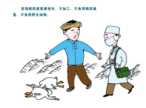 发现病死禽畜要报告,不加工、不食用病死禽畜,不食用国家保护的野生动物。
