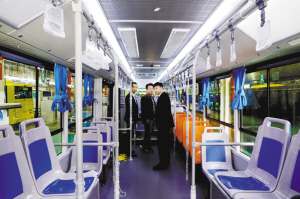 当日10时许,在郑州宇通客车股份有限公司生产车间,周口晚报记者见到了生产线上正在装配中的周口定制纯电动公交车,它们都是宇通E10车型。这些车给人的第一感觉是漂亮,外观设计简约大气。进入车内可以看到,该车乘客座位布局均匀,整体内饰简约时尚;车辆双开门设计,方便乘客上下车;车内空间开阔、过道通畅;车辆后部少台阶设计,旅客通过性好,同时扩大乘客站立区域。