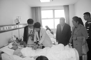 本报讯 得知同事李振宏患病急需用钱的消息后,太康县食品药品监督管理局的干部和职工纷纷捐款,奉献爱心。10月19日上午,该局纪检组长张春阁来到郑州大学第一附属医院,把6400元爱心款交给李振宏(下图)。