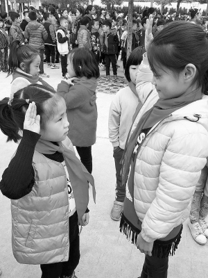 10月13日是中国少年先锋队第68个建队日,周口六一路小学举行新队员入队宣誓活动。高年级老队员为加入少先队的一年级新生佩戴红领巾,随后,新少先队员在少先队队旗下宣誓。