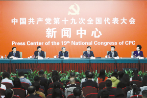 10月22日,中国共产党第十九次全国代表大会新闻中心举行记者招待会,请教育部党组书记、部长陈宝生,民政部党组书记、部长黄树贤,人力资源社会保障部党组书记、部长尹蔚民,住房城乡建设部党组书记、部长王蒙徽,国家卫生计生委党组书记、主任李斌介绍满足人民新期待,保障改善民生有关情况,并回答记者提问。新华社发