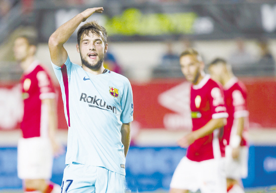 巴塞罗那队球员阿尔纳伊斯在进球后庆祝 西班牙国王杯32强战首回合 巴萨三球轻松获胜 新华社马德里10月24日电 西班牙国王杯32强战首回合24日进行。巴塞罗那、巴伦西亚等西甲球队均轻松战胜各自对手,只有马拉加在客场负于西乙球队努曼西亚。 巴塞罗那本轮客场3∶0完胜皇家穆尔西亚。阿尔卡塞尔在上半场结束前头球为巴萨首开记录。德乌洛费乌下半时开场