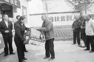 日前,扶沟县人民法院联合爱心企业保和堂大药店来到固城乡海岗村,将102床新棉被发放到贫困户手中,也将温暖送到贫困户的心中。
