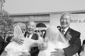 据了解,我市首届夕阳集体婚礼由市妇女联合会、市青年工作办公室、市老党员党建办公室主办。参加婚礼的老人们都已携手走过半生,他们年轻时的婚礼简单,有的甚至都没有举行婚礼。26对老人在现场深情拥抱(如图),向对方表达自己最真挚的情感。活动现场,儿女们还特地准备了礼物送给自己的父母,庆祝父母相亲相爱携手走过几十年。