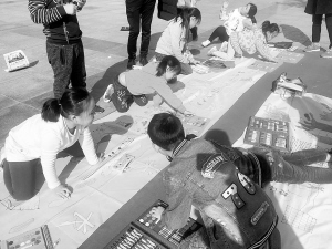当日上午,在五一文化广场,近百名周口晚报小记者在长长的画卷上有的画楼房、有的画城堡……他们用画笔描绘着心中美丽的家园,陪伴小记者一起参加活动的家长也不时地拍照。
