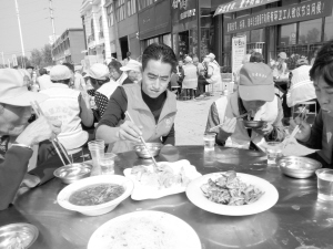 本报讯 10月28日是重阳节,商水县爱心人士王健邀请该县60岁以上的百名环卫工人共进午餐。
