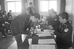 为从源头上消除道路交通安全隐患,商水县运输管理局、商水县交警大队日前对商水县安达运输有限公司等26家存在交通安全隐患的客、货运交通运输企业负责人进行集中约谈,以确保这些企业所属车辆的检验率、报废率、违法清零率达到100%。图为被约谈企业负责人在签订安全责任书。晚报记者 马治卫 通讯员 靳新伟 摄