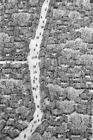 此作品是作者根据1975年的航拍照片进行的再创作。