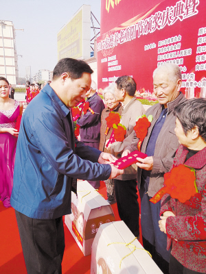 周口报业传媒集团党委书记、董事长、周口日报社社长王彦涛为获奖老人颁奖